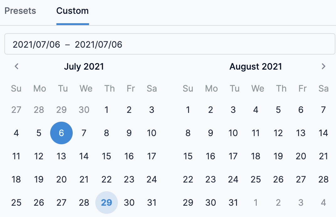 2. Custom: Custom allows you to select the date range.