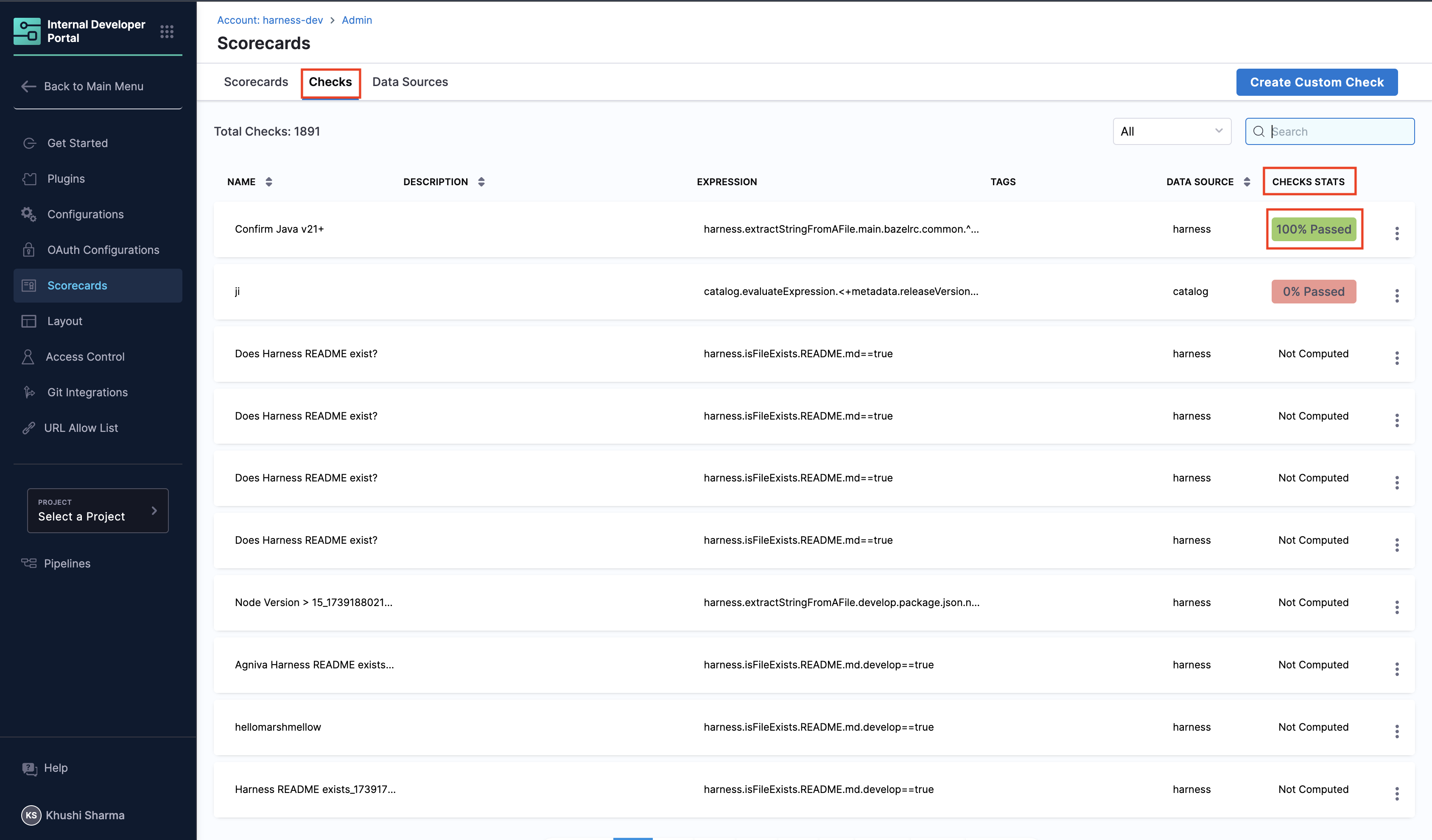 Click "Scorecards" and navigate to the "Checks" section.
