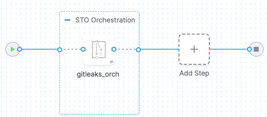 The following pipeline illustrates an orchestration workflow where the Gitleaks step scans the codebase and ingests the results in one step.