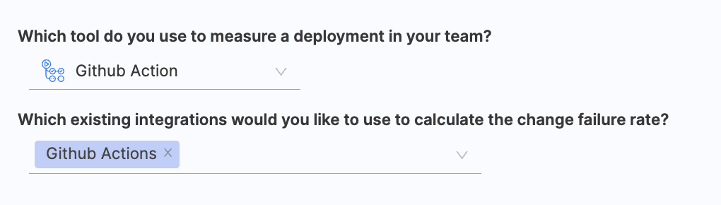 - Choose GitHub Actions as the tool to identify failed deployments within your team.