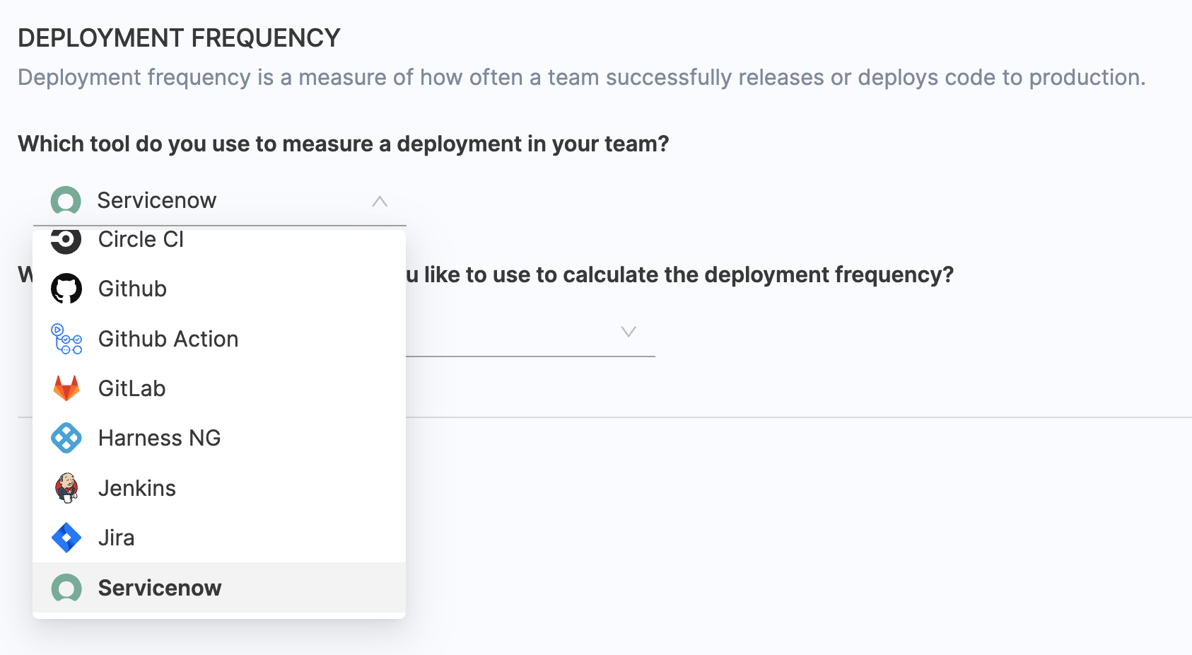 - Choose ServiceNow as the tool that you use to measure change failure rate in your team.